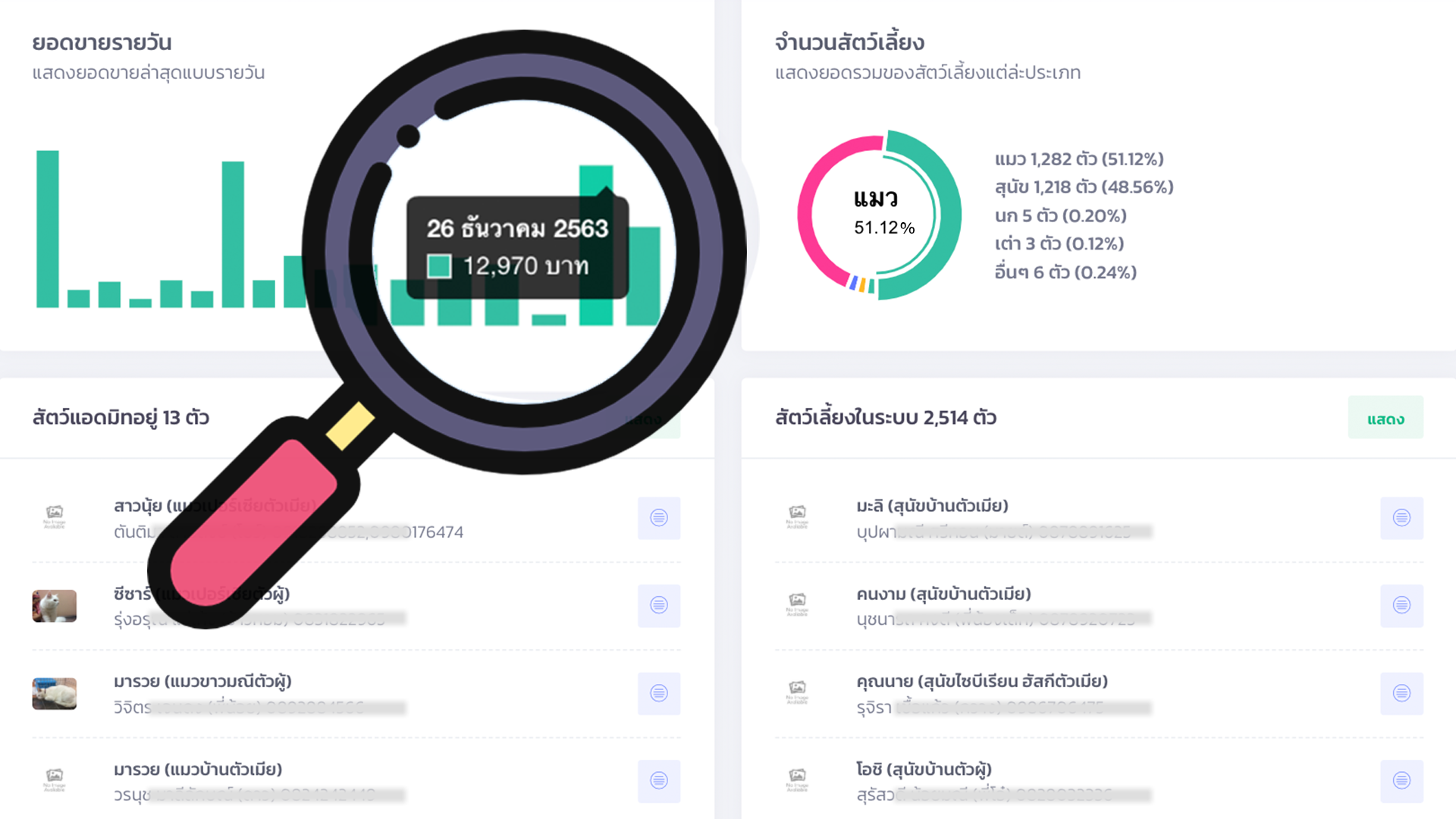 รายงานภาพรวมสำหรับคลีนิคสัตวแพทย์โดยเฉพาะ รายงานภาพรวมอัตโนมัติ (Dashboard) และรายงานทางเงิน (Financial Reports)
